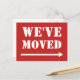 Modern arrow change of address postcards. Custom cards with red background and big letter text. Noticeable moving postcards with icon. Custom move text; We have moved! I've moved or We've moved! Add your new address of your house on the back. Cool red sign moving cards for new home, housewarming party or new business location. Great for home, shop, business, fresh market, store, company etc.