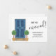 Let family and friends know your new address with this simple We've Moved Announcement Card. It is decorated with a watercolor blue door and pot plants. Customise this card with your name and new address. Change the number on the door to your new number! Original Watercolor © Michele Davies.