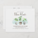 Simple budget moving announcement postcard featuring boho watercolor house plants in pots. The typography used is modern, minimal and easy to customise with your details by clicking the "Personalise" button above.