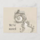 Original pencil drawing of an abandoned snail house where this house has two closed windows and closed doors. It also has a roof and a lovely path leading to it. On the left bottom corner is customisable text saying: "We've moved".