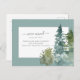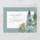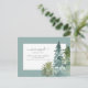 This design features watercolor pine trees and custom script calligraphy on a simple background.