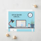 Our offices have moved to another building, please update your address book. Complete the back with your custom company information to send out change of address postcards to all of your business contacts and clients. Simple, modern desk art drawing for a fun new address postcard for a business.