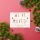 We've moved! Send your new address to friends and family with this big simple typography cool real rose gold foil modern typography on pastel blush pink. Perfect moving announcement.