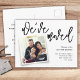 Modern script calligraphy reads WE'VE MOVED over your favourite family snapshot or photo of the new house attached with printed gold tape on this cute, simple moving announcement card. Easily customisable change of address notice will make it quick and stylish to share the news of your new home!
