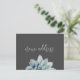 Elegant succulent Grey We've moved announcement postcard. With an elegant script typography and green botanical design, white lettering can be personalised with your information. Great for adding a desert greenery touch while announcing your new home.