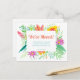 Watercolor tropical flowers frame for your new home announcement postcard.