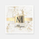 Wh & Gold Marble Gold Box, DIY Black Name Monogram Napkin