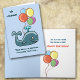 Here's a cute kid's birthday card that you can personalise. It features a cartoon image of a blue whale with brightly coloured birthday balloons on the front. The text on the front currently says "Hi Jason! This whale is bringing balloons your way..." On the inside is the same balloon image, with the words, "...to say we hope you have a very Happy Birthday!" Easily customised to say anything you'd like.
