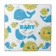 Whale & Blowfish Cartoon Baby Monogram Pattern Tile