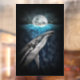 Whale By Moonlight Window Cling. Great design for whale lovers. A Humpback whale surfacing by moonlight.