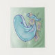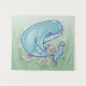 A funny cartoon illustration of a whale sitting on the ocean floor with a ball of yarn and a crochet hook. The cute, vector sperm whale is making pegging squares. A fun design for anyone who loves marine animals and crochet.