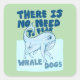 A funny illustration of a creature which is half dog and half whale. The text reads there is no need to fear the whale dog. A humourous illustration for children or anyone who loves both dogs and whales.