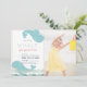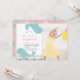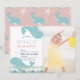 This cute and modern "A Whale of a Good Time" girl's birthday photo invitation features a pair of whales in light teal with blue waves on the sea on a white background framed by a blush pink border. The reverse side features a pink background with patterns of whales and star fish. Personalise for your needs. You can find more matching products at my store.