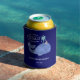 This cute birthday can cooler features a cute watercolor whale with a party hat and trendy typography on a navy background. Personalise the birthday can cooler by adding your child's name, age, and event date.