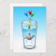 Pool party birthday invitation with a cute illustration of a little whale. The whale is wearing a red and white striped party hat and has started the birthday party which takes place in a filled water glass.