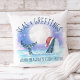 Add some nautical fun to your holiday decor with this Christmas cotton throw pillow featuring a watercolor whale wearing a Santa hat swimming in the sea under a magical moon and stars with string lights decorating its tail. The "Seas & Greetings" and "Wishing you a whale of a good Christmas" greetings can be personalized. Reverse side is navy blue. Art by KL Stock