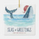 Whale Santa Seas & Greetings Coastal Christmas Ceramic Ornament
