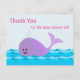 A cute girl themed whale and nautical baby shower thank you postcard. Customise this template as desired. This design coordinates with "Whale It's A Girl" baby shower theme by Night Owl's Menagerie. Original vector art by Night Owl's Menagerie, 2015.