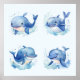 cute blue whale wall art poster