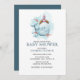 Adorable whale under the sea baby shower invitation featuring a whale with a lighthouse upon back & fish happily swimming around him. Perfect for your whale theme baby shower for a boy or girls' shower.
