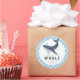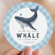 Add a splash of fun to your party favors with this adorable whale thank you sticker! Featuring a cute watercolor whale blowing bubbles on a blue checkered background, this round sticker is perfect for an under the sea or ocean themed birthday party. Customize with your child’s name for a sweet and playful finishing touch to goodie bags, envelopes, or party favors.