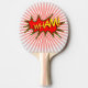 Wham explosion. Wham explosion with explanation mark. Showing abstract red explosion with yellow border. Wham text lightly skewed and written in cartoon style. As background a 30 spoke radial in the colours red to blue and ending with a zero opacity.