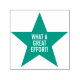 This inspiring rubber stamp design features the encouraging message "WHAT A GREAT EFFORT!". It also features a decorative star shape. It could be used by a school teacher or educator when marking assignments, to acknowledge that a student has done well.
