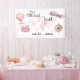Celebrate your baby girl's first birthday with this adorable “What a ONEderful World” travel-themed banner! Featuring a pink aeroplane, suitcases, vintage-style globe, and compass rose, the design is set against a soft watercolor world map in pale pink and peachy tones. A whimsical and heartwarming way to decorate your birthday party.