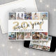 What a Year Modern 10 Photo Collage White and Gold Holiday Card