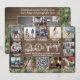 What a year to remember! This year celebrate the joyful wonders of modern technology with a fun interactive QR code photo collage holiday card. Share 12 of your favourite pictures as well as an online video message, song, photo album, or other website. (IMAGE PLACEMENT TIP: An easy way to centre a photo exactly how you want is to crop it before uploading to the Zazzle website.) Text on this template is simple to customise to include any wording such as Merry Christmas, Happy Holidays, Seasons Greetings, New Years Cheers, etc. The modern farmhouse style design features rustic brown faux wood, festive botanical watercolor pine greenery with string lights, trendy handwritten style script calligraphy, modern typography family name and year, a scannable QR Code, and a unique photo grid of twelve square pictures with typewriter font captions. Family and friends will love scanning and displaying this elegant customised card.