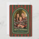Create unique Christmas cards this holiday season with this trendy 'Year in Review' Christmas Card With Photo Collage. Featuring a vintage green & red colour scheme with hand drawn stripe pattern background and arch photo frame, paired with retro font which reads 'Merry Christmas' with customisable note from you that reads ' With Love, {Family Name}'. The back of the card features a photo collage of 12 photos, one for each month of the year, with a custom message underneath each photo and a caption that reads 'A Year To Hold Dear' written in a retro font.