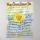 The text of "What Cancer Cannot Do" radiate out in blue and gold colours from a central heart with an angel in it. The painting was rendered in watercolor.