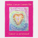Art features the "What Cancer Cannot Do Rainbow Heart". This painting has the colourful thick rainbow watercolor paint and the poem of "What Cancer Cannot Do" swirls around it. The painting was rendered in acrylic. The poem words say "What Cancer Cannot Do, Cancer is so limited... It cannot cripple love. It cannot shatter hope. It cannot corrode faith. It cannot destroy peace. It cannot kill friendship(s). It cannot suppress memories. It cannot silence courage. It cannot invade the soul. It cannot steal eternal life. It cannot conquer the spirit. -Author Unknown"
