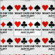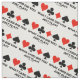 If you play with a fast card playing partner, you'll enjoy this wry bridge saying fabric featuring the four card suits along with the often heard remark at the bridge table: "What Card Did You Just Play?" Make others do a double-take at the bridge table with this bridge query fabric the next time you create!