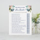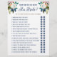 Romantic painted florals bridal shower game with yes or no answers, will the groom match her answer.