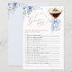 An elegant and playful bridal shower game featuring a chic espresso martini aesthetic with a soft blue bow and graceful floral details.