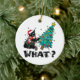 WHAT Funny Black Cat Santa Pushing Christmas Tree Ceramic Tree Decoration