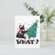 WHAT Funny Black Cat Santa Pushing Christmas Tree Enclosure Card