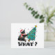 WHAT Funny Black Cat Santa Pushing Christmas Tree Holiday Postcard