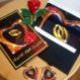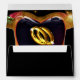 A very unique and beautiful envelope to mail your wedding invitations. These envelopes have a printed image of an acrylic painting of two gold wedding bands inside a gold heart. There is a love red rose on the side of the heart. You can customise the envelopes for your special announcement. There are matching customisable invitations available.