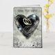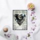 Beautiful save-the-date wedding invitation. These invitations have a printed image of an acrylic painting of two silver wedding rings. These rings are standing side by side inside a heart-shaped bubble.