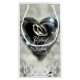 Beautiful elegant wedding gift bags that you can customise. This gift bag has a printed image of an acrylic painting of two silver wedding bands inside a crystal heart. There are also two lovely white roses on the design. Great wedding design bag to put your wedding gift inside for the bride and groom.