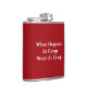 Well made flask, a little better than I had expected. Flask came in clear plastic box which gave it a nice presentation when I took it out of the zazzle packaging. Image is not printed on flask but on sticker. Don't know how this will hold up I haven't used it yet. This would make a Great gift! I plan to purchase more for friends! Cheers. I thought a little brighter than computer. Very crisp, writing wasn't