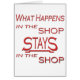 This is one of the many "What Happens Stays" designs. In the Shop is the focus of this one. Perfct on any Mug, Hat, T-Shirt, Sweatshirt, etc