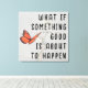 Canvas wall art with encouraging quote What if Something Good is About to Happen and a monarch butterfly. Encourage yourself or a friend. Stop the negative thinking.