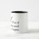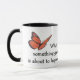 White coffee mug with picture of a monarch butterfly and the saying What if Something Good is About to Happen. Make someone happy. Cheer up a friend. Encourage yourself with every sip. Stop the negative thinking!
