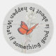 Round sticker with saying What if Something Good is About to Happen. Encourage a friend. Lift someone's spirit. Think positively about yourself. Give a set of stickers away as gifts or use them for gift wrapping.