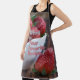 It's a Beautiful “All-Over Print Apron” Designed with Typography – “What is your Favourite Recipe”. It shows an image of a Strawberry inside the white Bowl.