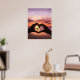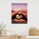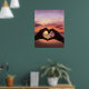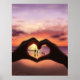 A husband looks through the heart-shaped hands at his young family on the beach in beautiful sunset. A sentiment of tenderness fills this digital painting about love and family.  Choose your size, paper stock, mat, and frame to create a special art for your decor or purchase the print only and enjoy it as a poster. ©Aruarian Dancer / MiyabiLine