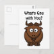 What’s Gnu, Funny Buffalo Cartoon Animal Pun Postcard